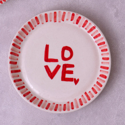 Love with Stripes Plate – Glazed Ceramic Dessert Plate – 5 Inch – Microwave & Dishwasher Safe