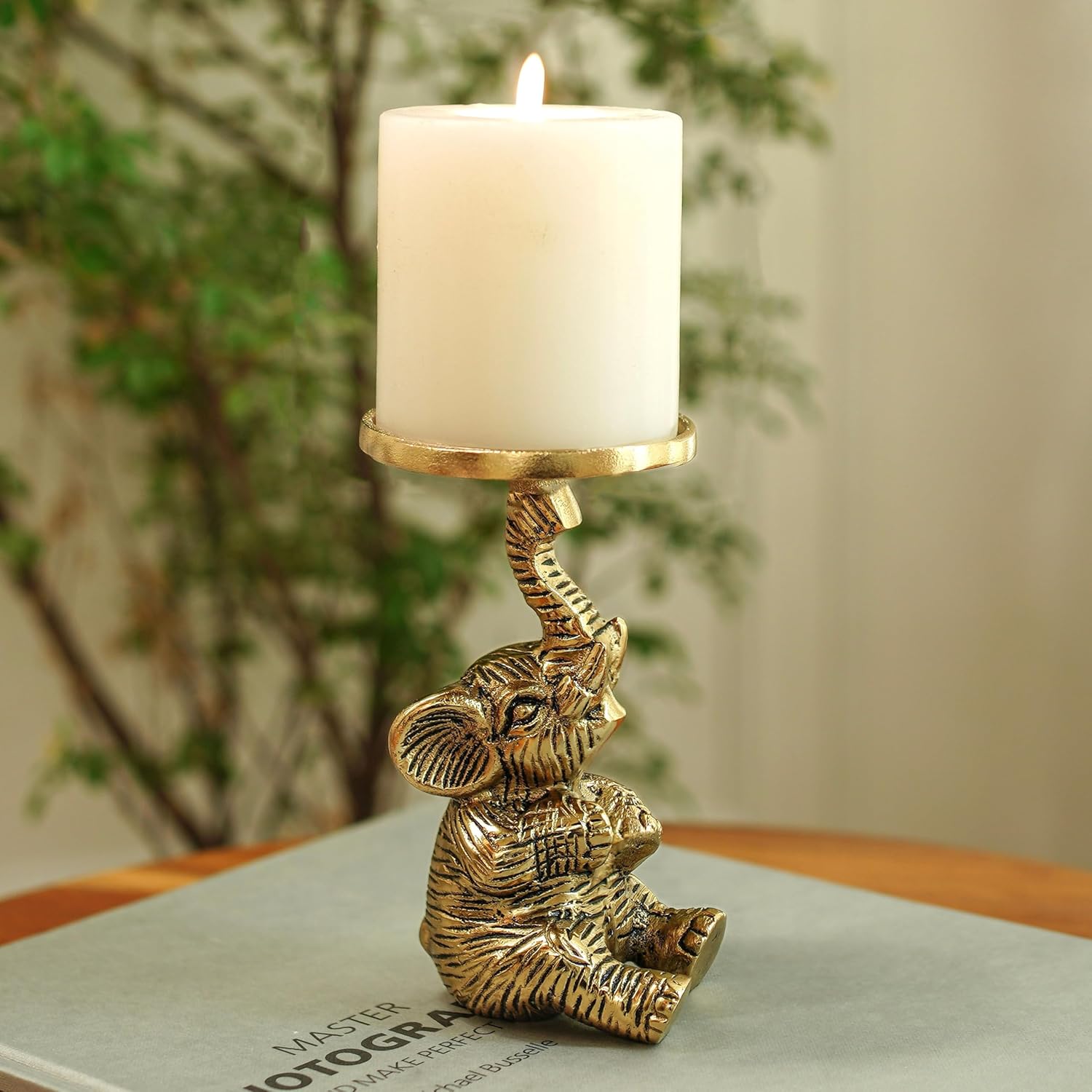 Artistic Gold Elephant Pillar Candle Holder Statue 8x8x15cm | Home Decor, Tabletop Showpiece, Wedding Gift