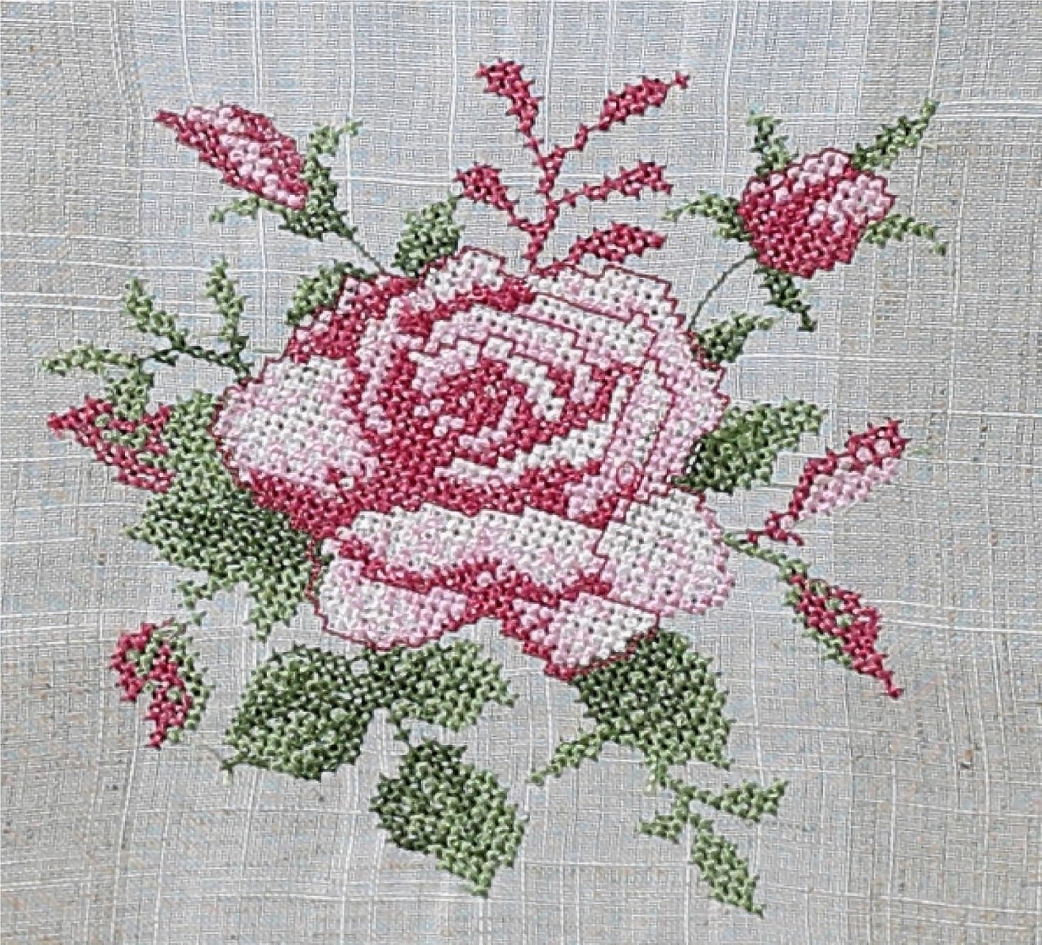 - Crafted from premium quality linen, featuring a beautiful cross-stitch embroidery design in a charming pink hue.