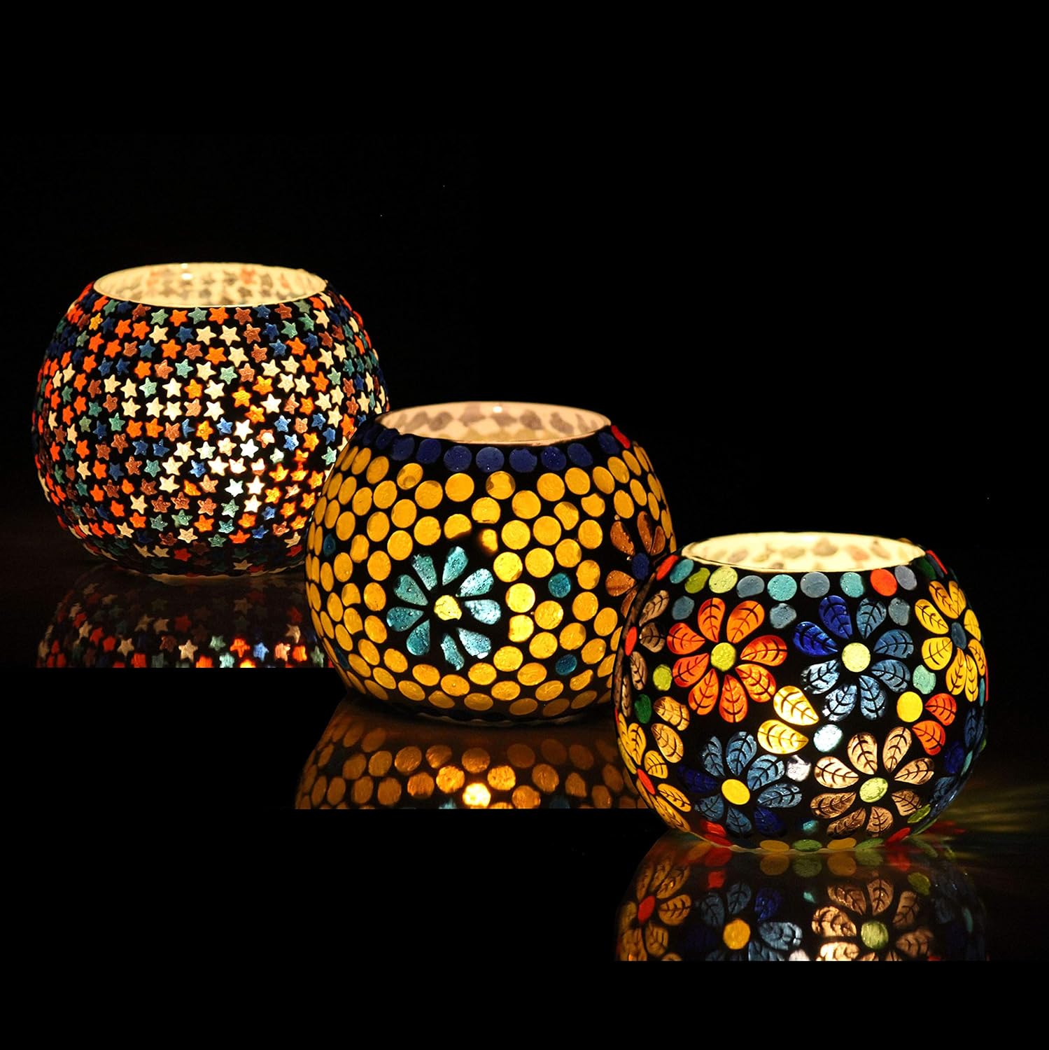 Beautiful Glass Mosaic Hand-finished Tealight Votive Holders Set of 3 | Diwali, Christmas, Home Decor Gifting Centerpiece