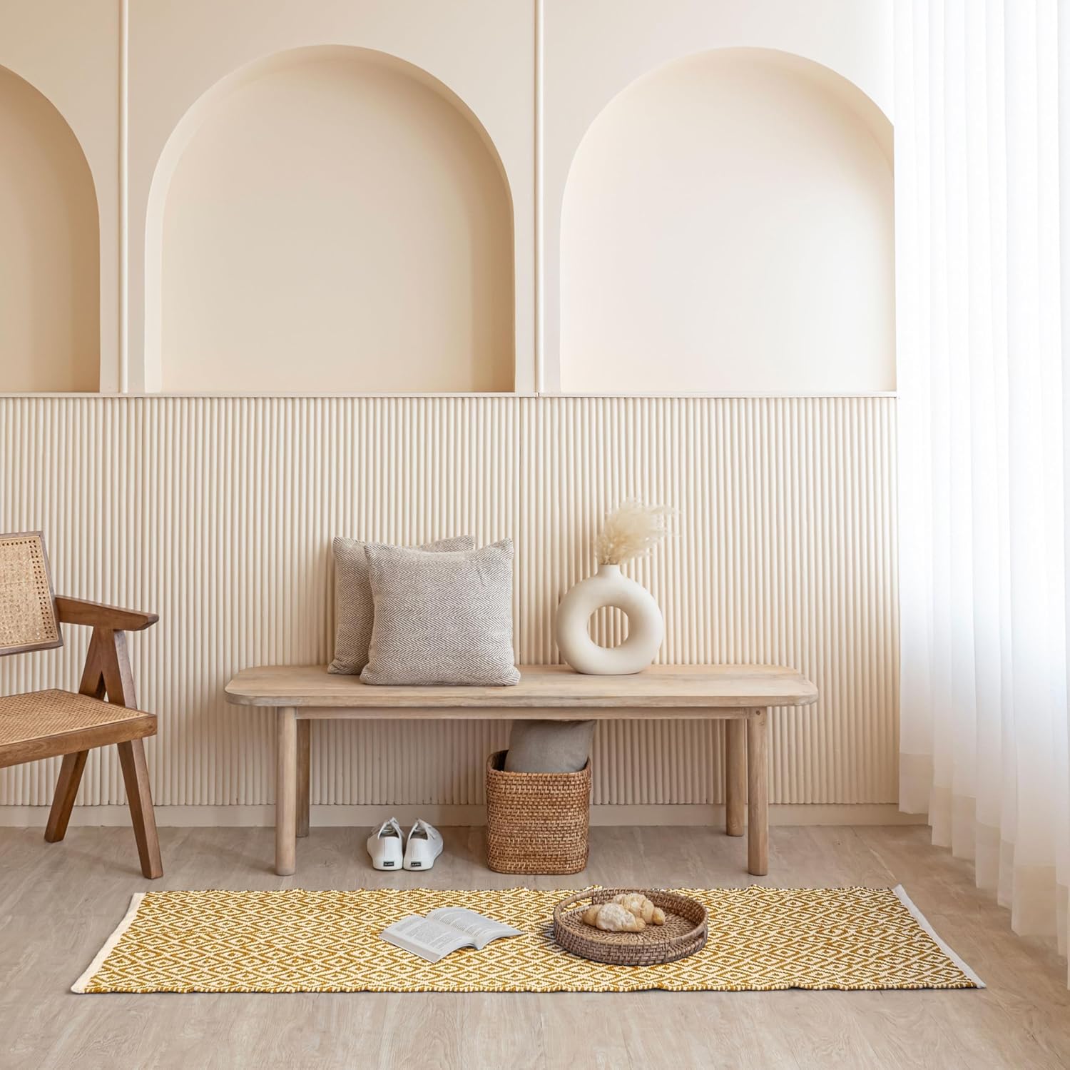 - Experience the natural comfort and durability of our hand-woven cotton rug.