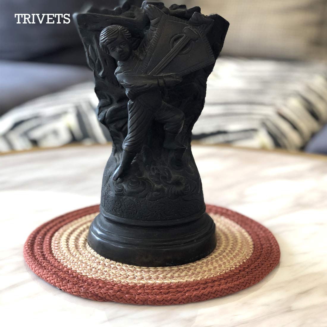 Braided Round PP Trivet Set (3 PCS, 9" Dia) | Machine Washable Pot Mat for Dining Table, Hot Pots, Casserole