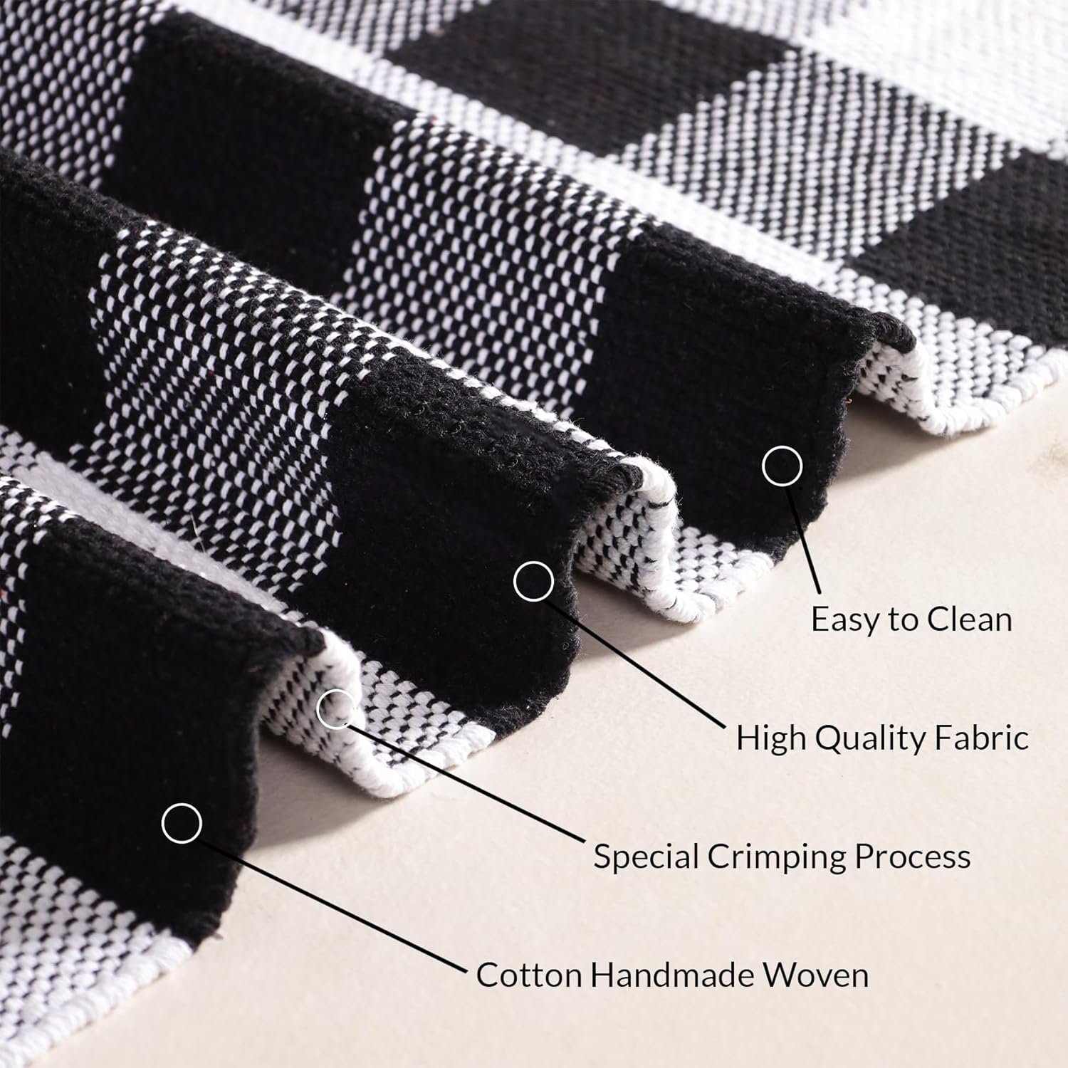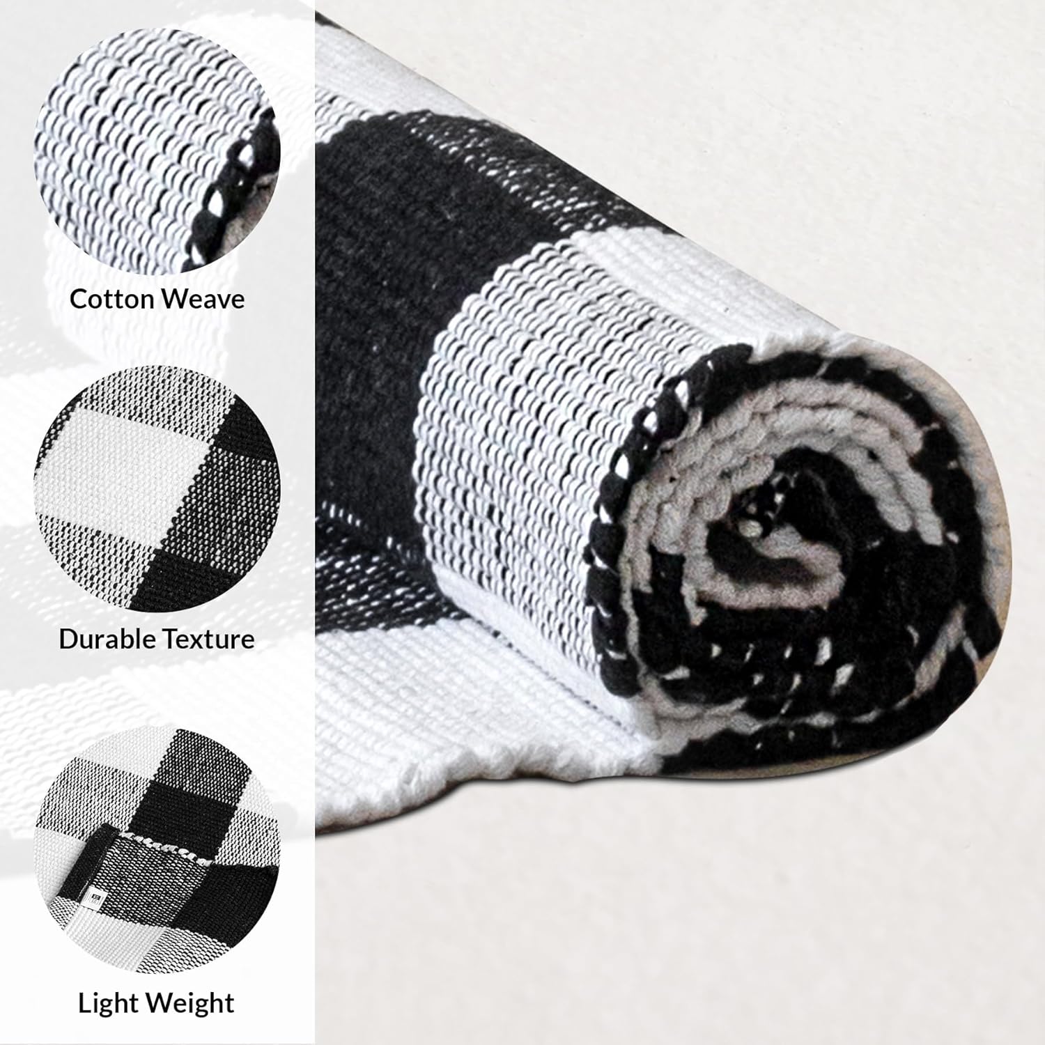 Buffalo Plaid Cotton Rug Runner - Hand Woven Washable Check Floor Mat (Black & White, 2x6 ft) | Farmhouse Entryway Kitchen Decor