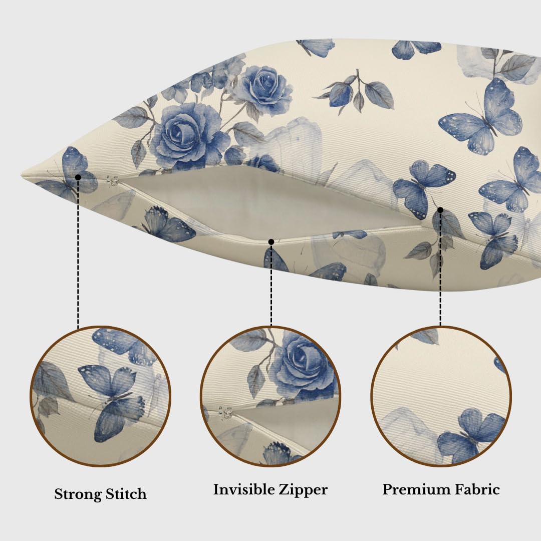 Decorative Butterfly Print Soft 180 GSM Cushion Covers 16x16 Inch Set of 2 | Sofa Bed Chair Home Decor Gift, Hand Block Printed
