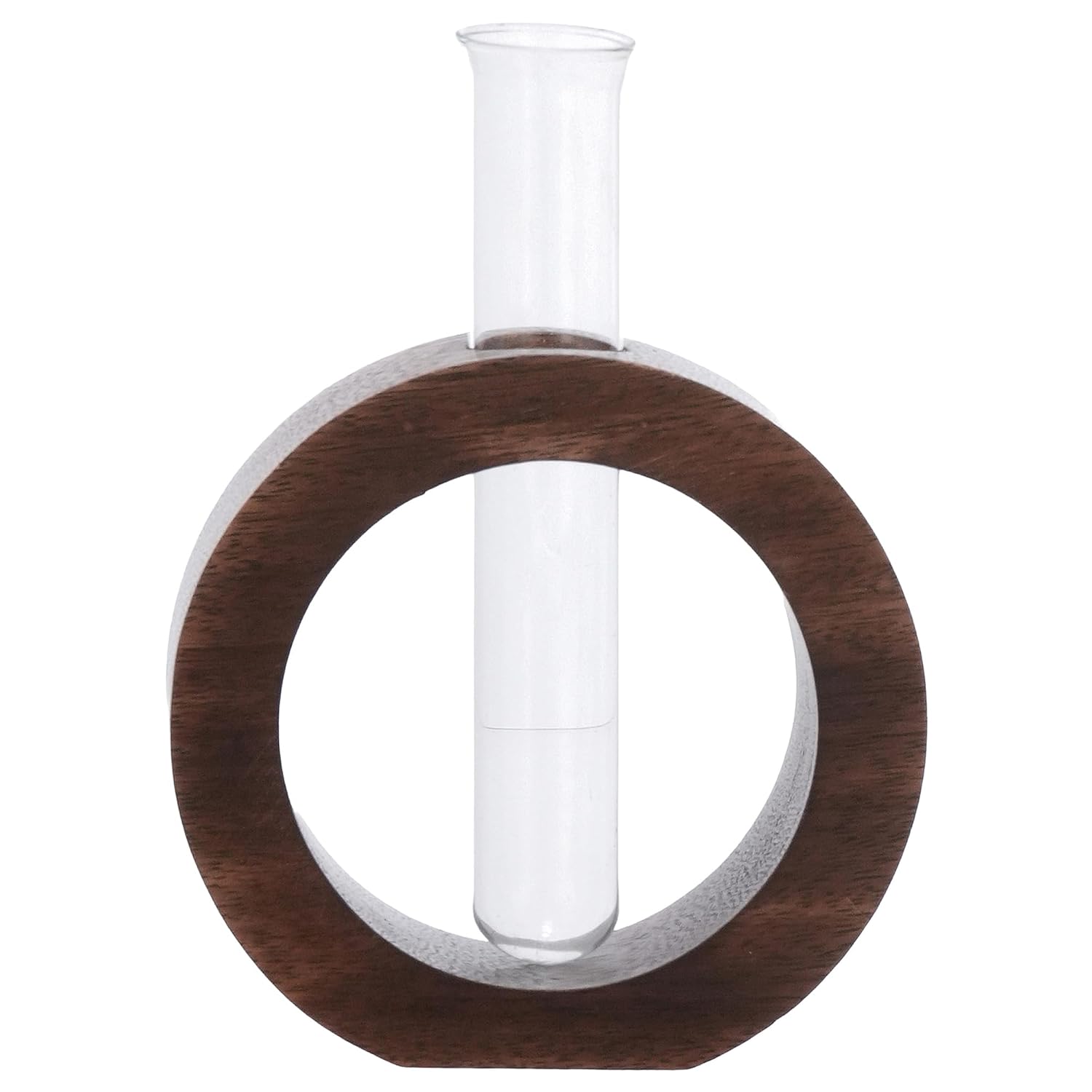 Decorative Glass Test Tube Vase with Donut Wooden Holder, Brown | Plant Propagation Station, Home Office Decor Gift