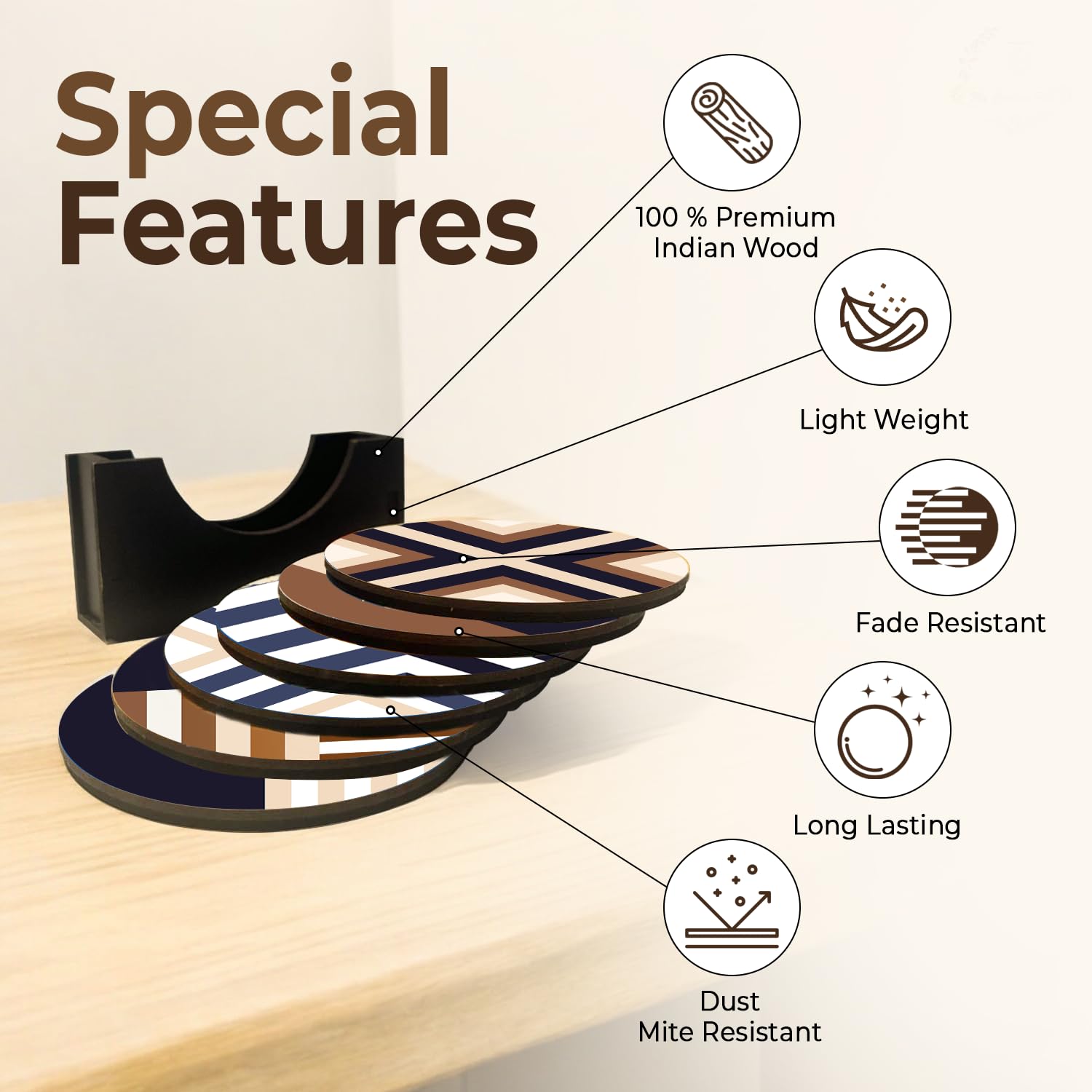- Material: Crafted from beautiful wood, these coasters add a touch of natural elegance to any setting.