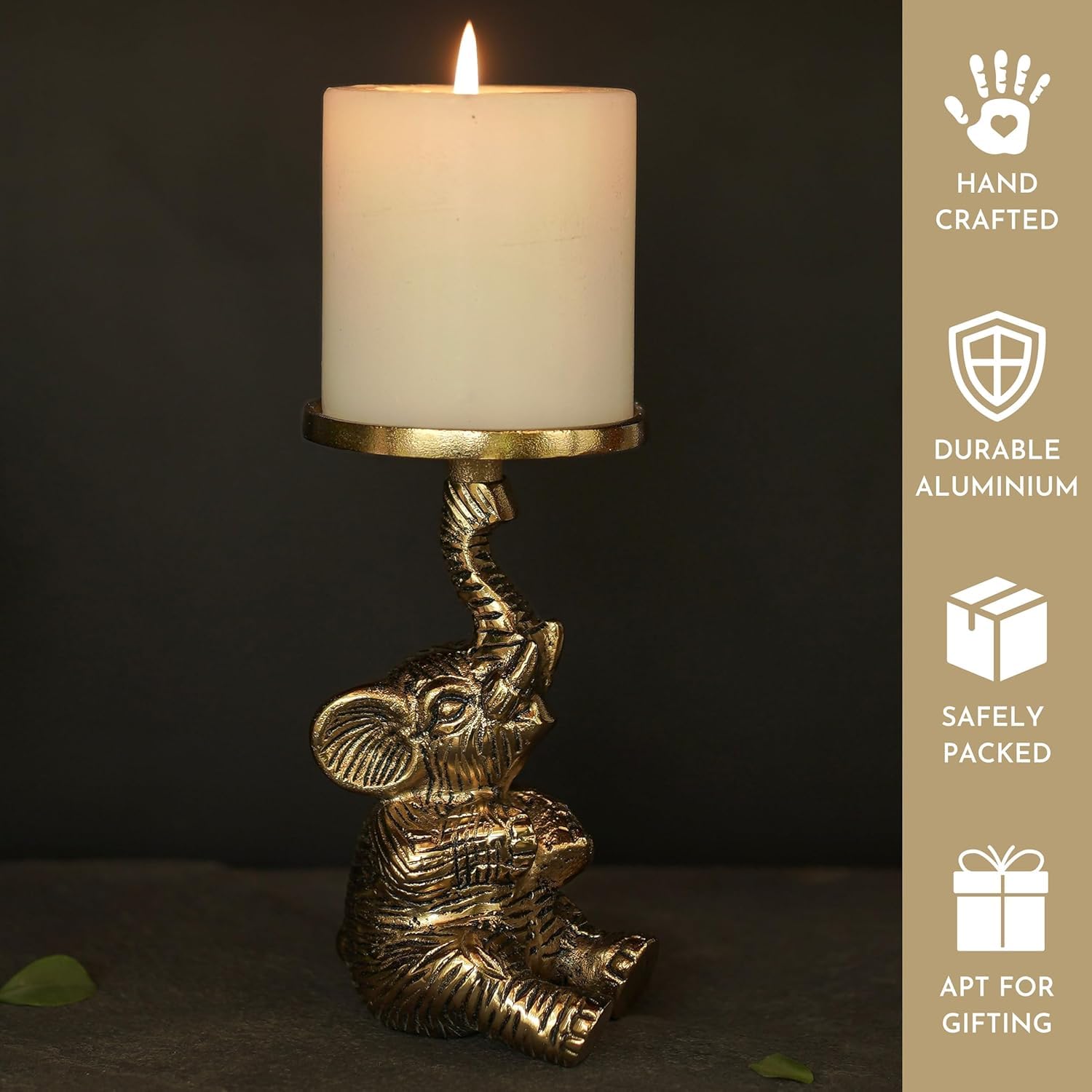 Elegant Gold Handcrafted Elephant Pillar Candle Holder Statue Set of 2 | Home Decor, Wedding, Christmas Gift, Tabletop Showpiece