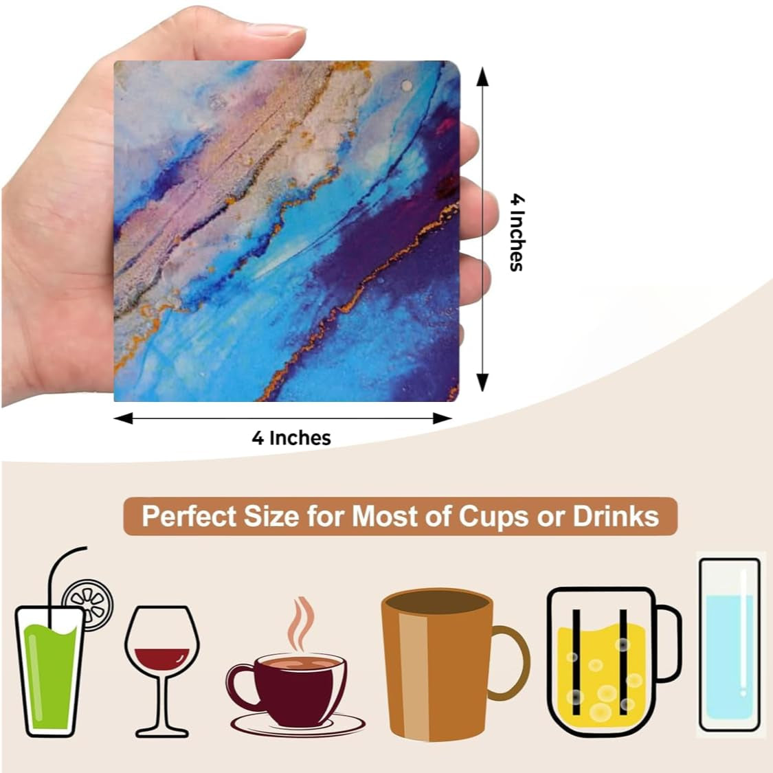 - Perfect for tea cups, coffee mugs, and glasses, these coasters are ideal for daily use in kitchens, dining rooms, bars, restaurants, and coffee shops.