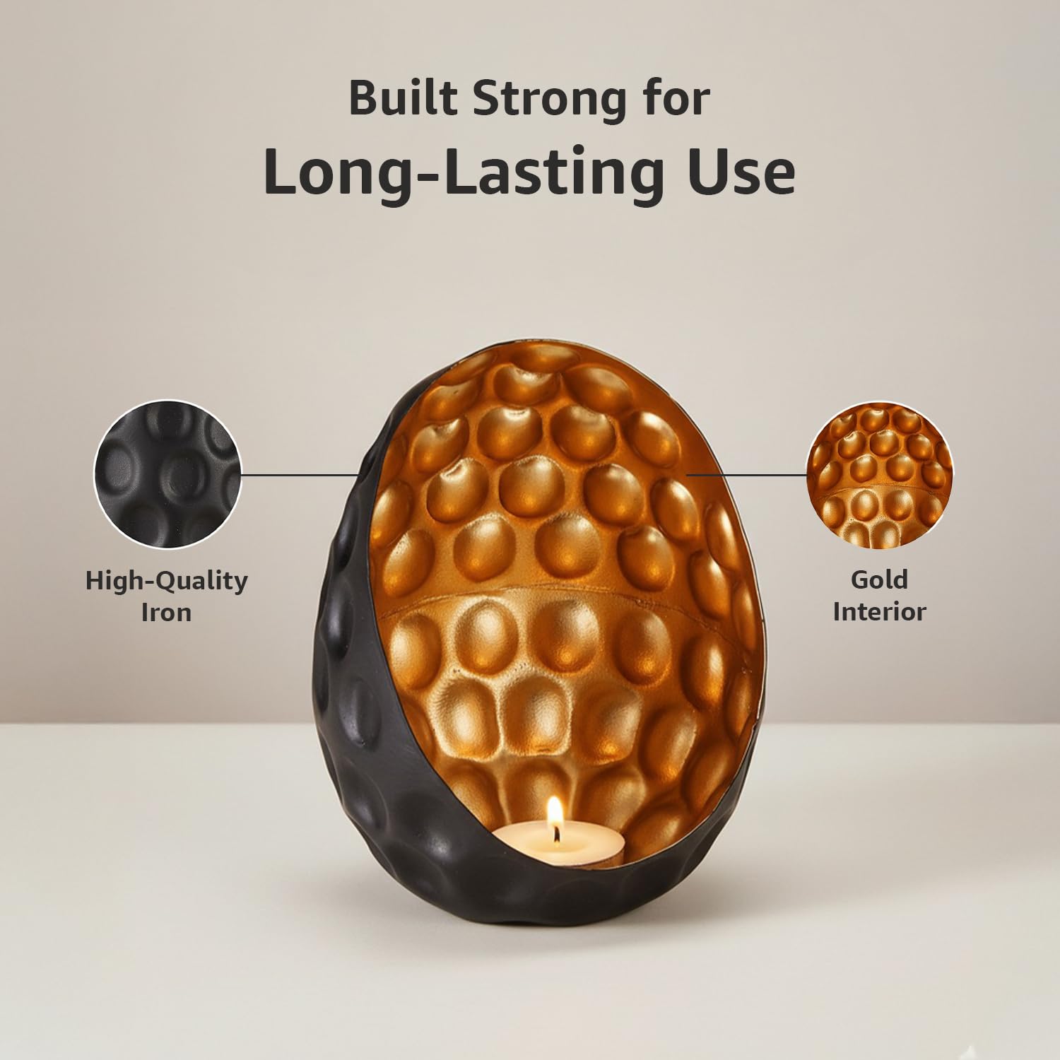 - Elegant Design & Versatility: Featuring an intricate oval diamond design with a sophisticated black iron exterior and a warm gold interior, these votives instantly elevate the ambiance of any space. Perfect for creating a cozy, enchanting atmosphere in your living room, bedroom, patio, or for special events and festive occasions.