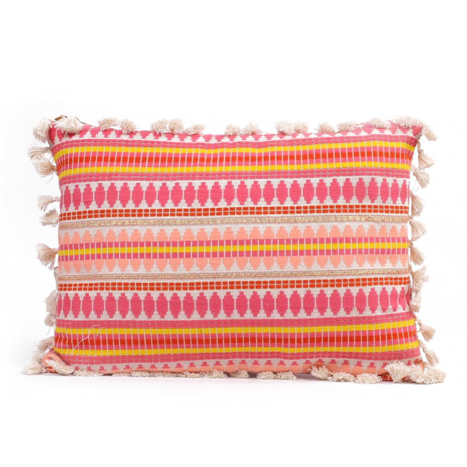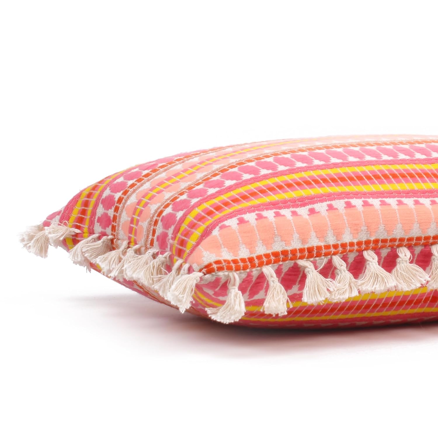 Geometric Pink Woven Cushion Covers with Tassels - 12x18 Inch Set of 2 | Decorative Throw Pillowcases for Sofa, Bed, Home Décor