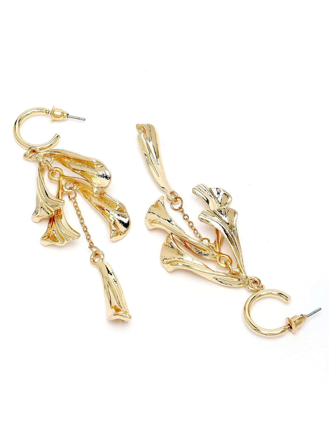 Each earring features a base metal expertly coated with a layer of gold plating, ensuring a lustrous finish. The construction focuses on lightweight design for comfortable wear and secure fastenings for retail display integrity.