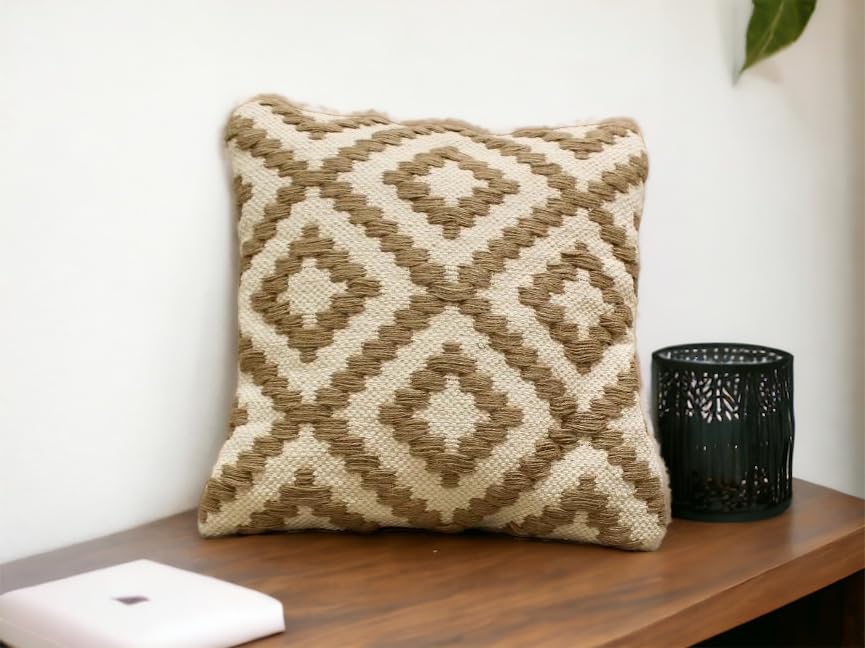 Hand Crafted Bohemian Pit Loom Cushion Cover 18x18 Set of 1 | Boho Living Room Decor, Cotton Pillow Cover