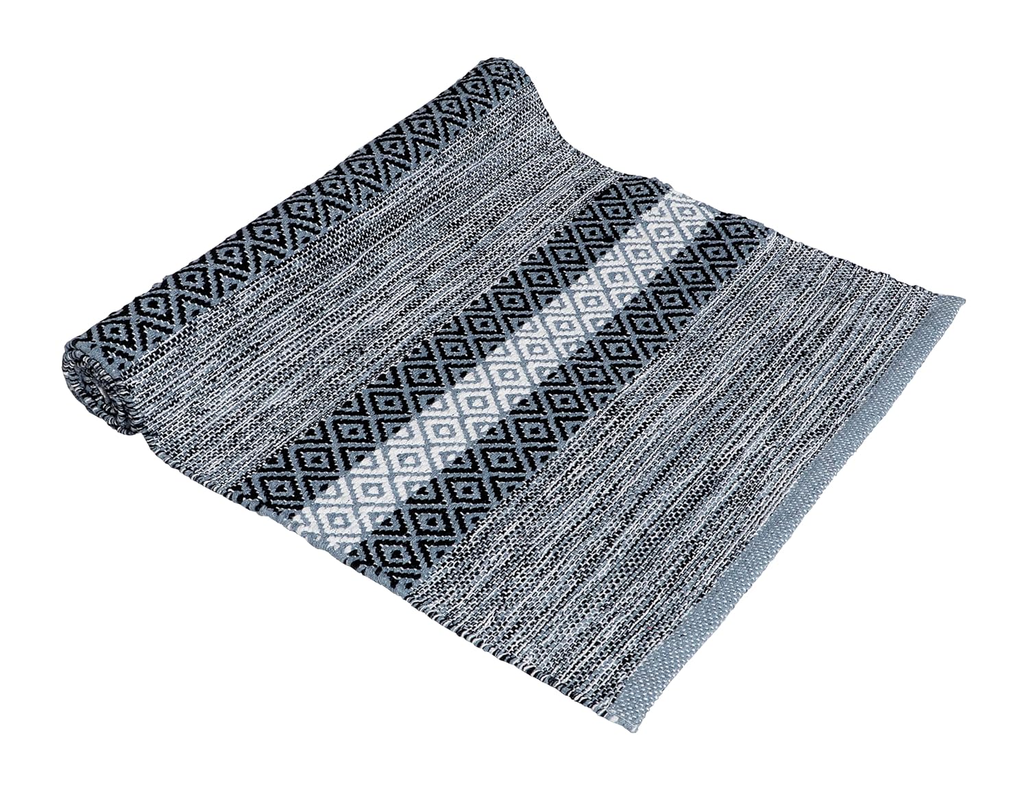 Hand Woven Modern Cotton Designer Rug, Carpet, Bedside Runner 2x5 ft (60x152 cm) | Washable Floor Mat for Bedroom, Living Room
