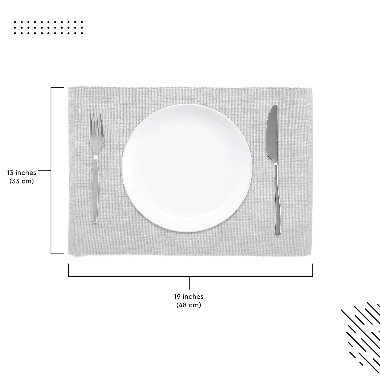 Handmade Light Grey Ribbed Cotton Dining Table Mats Set of 6, 48x32 cm | Heat-Resistant, Washable Placemats