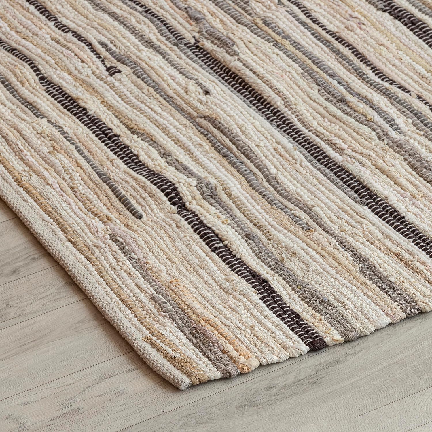 Discover the unique charm of our HOMEMONDE Chindi Rectangular Rug, meticulously hand-woven from recycled cotton yarns and fabric rags. Each rug boasts a distinctive striped design, offering a rustic and boho-chic aesthetic that adds warmth and character to any room. Embrace eco-friendly decor without compromising on style or durability.