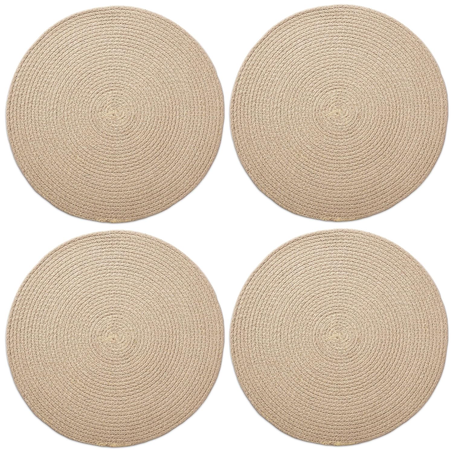 Handmade Ribbed Cotton Dining Table Mats Set of 4, 32cm | Heat-Resistant Washable Placemats, Kitchen Table Mats Beige