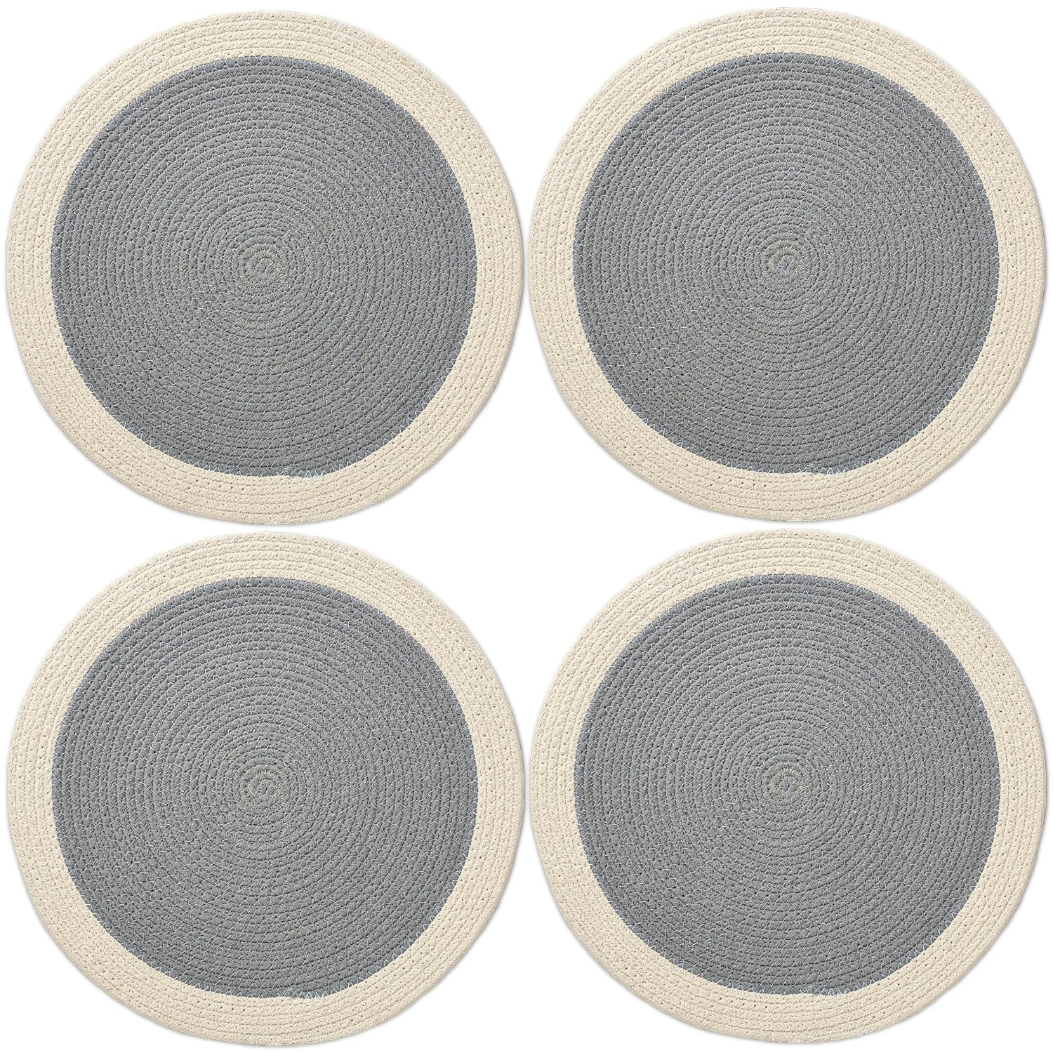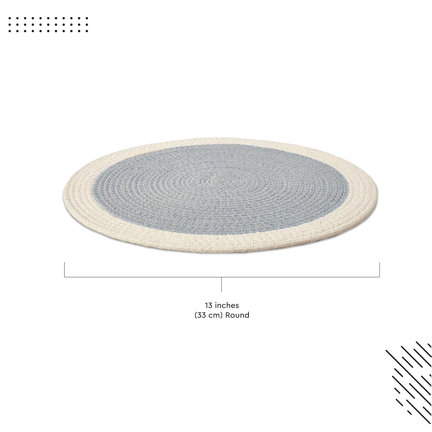 Handmade Ribbed Cotton Round Table Mats Set of 4 | Heat-Resistant, Washable Dining Placemats 32cm, Light Grey