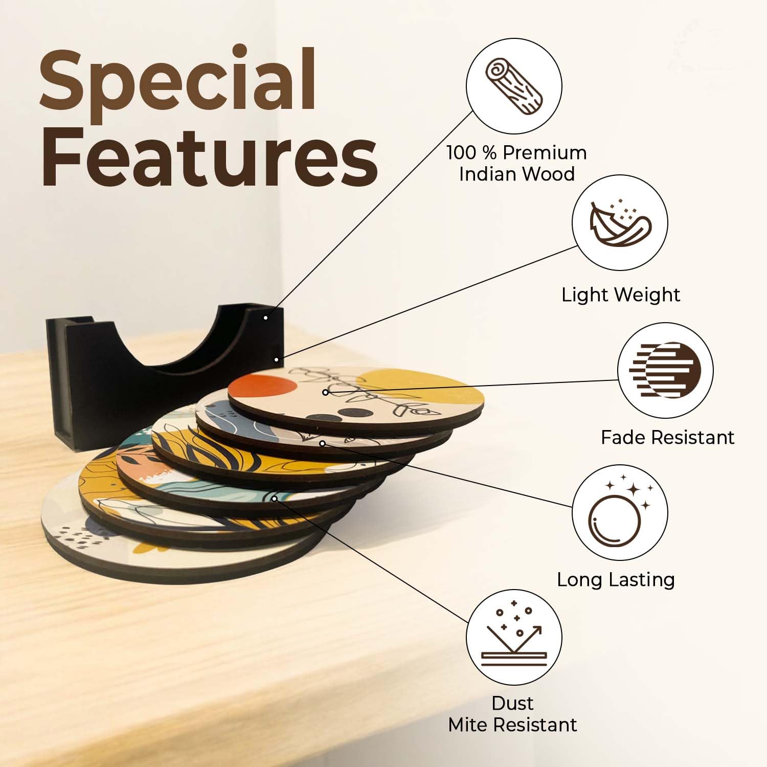 Flora Design Tea Coasters Set of 6 with Stand | Beautiful Home Decor, Gifting, Coffee Mugs & Glasses