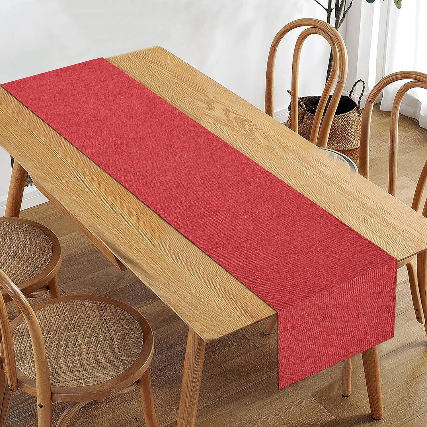 Discover the perfect blend of style and practicality with the Jute Dining Table Runner. Crafted from durable poly jute fabric, this runner adds a touch of natural elegance to any dining setting.