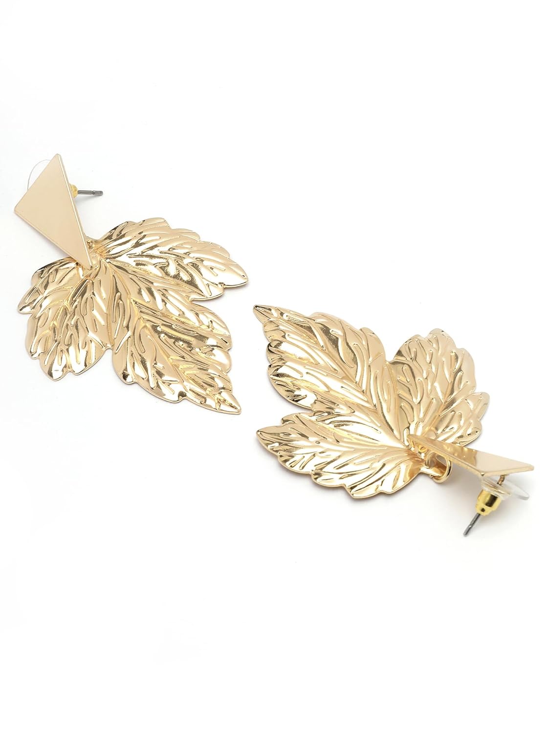 Each pair of earrings is crafted with a durable base metal, meticulously finished with a high-quality gold plating. The leaf design elements are precisely formed, ensuring a refined aesthetic and structural integrity. This construction provides a premium look and feel, suitable for everyday wear and special occasions.