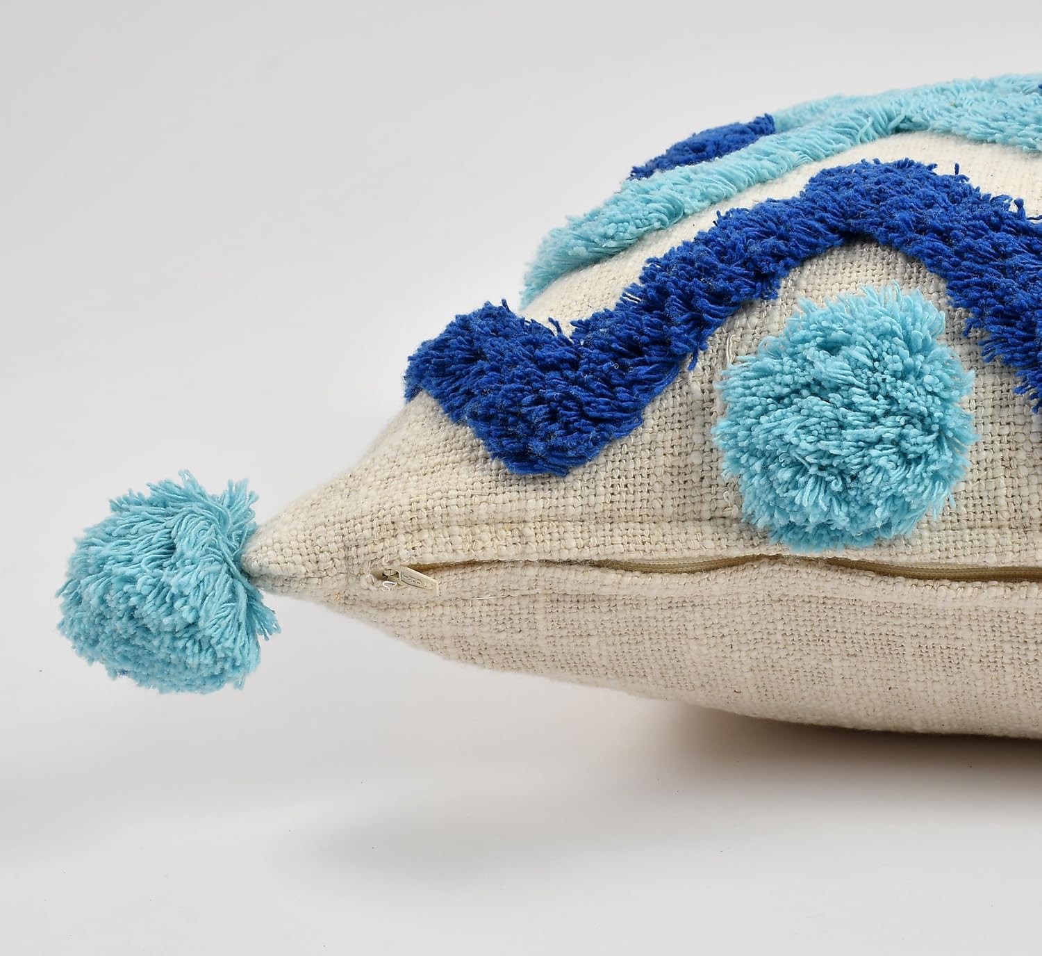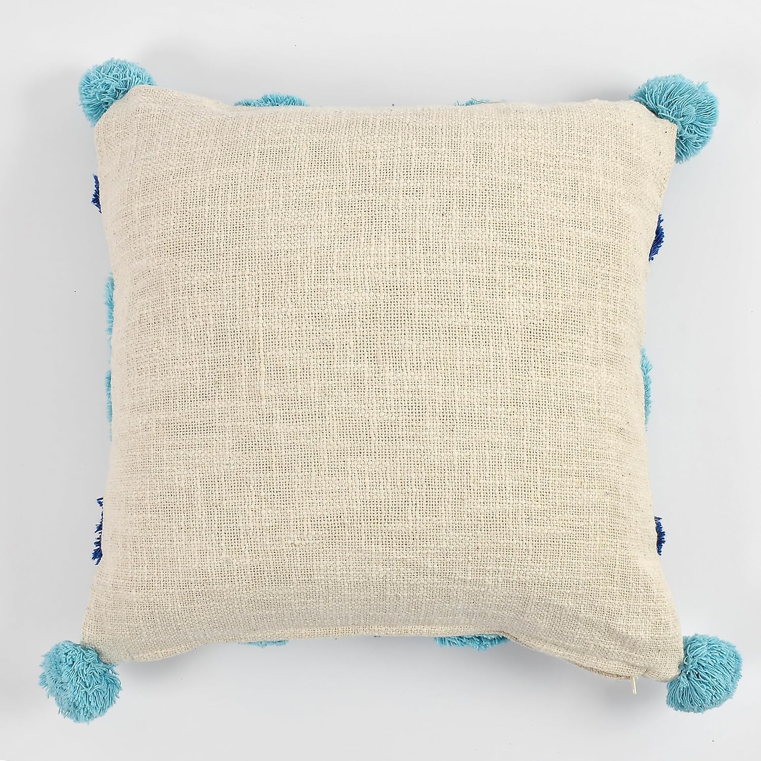 Modern Bohemian Geometric Tufted Throw Pillow Cover, Blue Mix Pom Poms, 16x16 Inch, 1 Piece | Decorative Cushion for Sofa & Home Decor