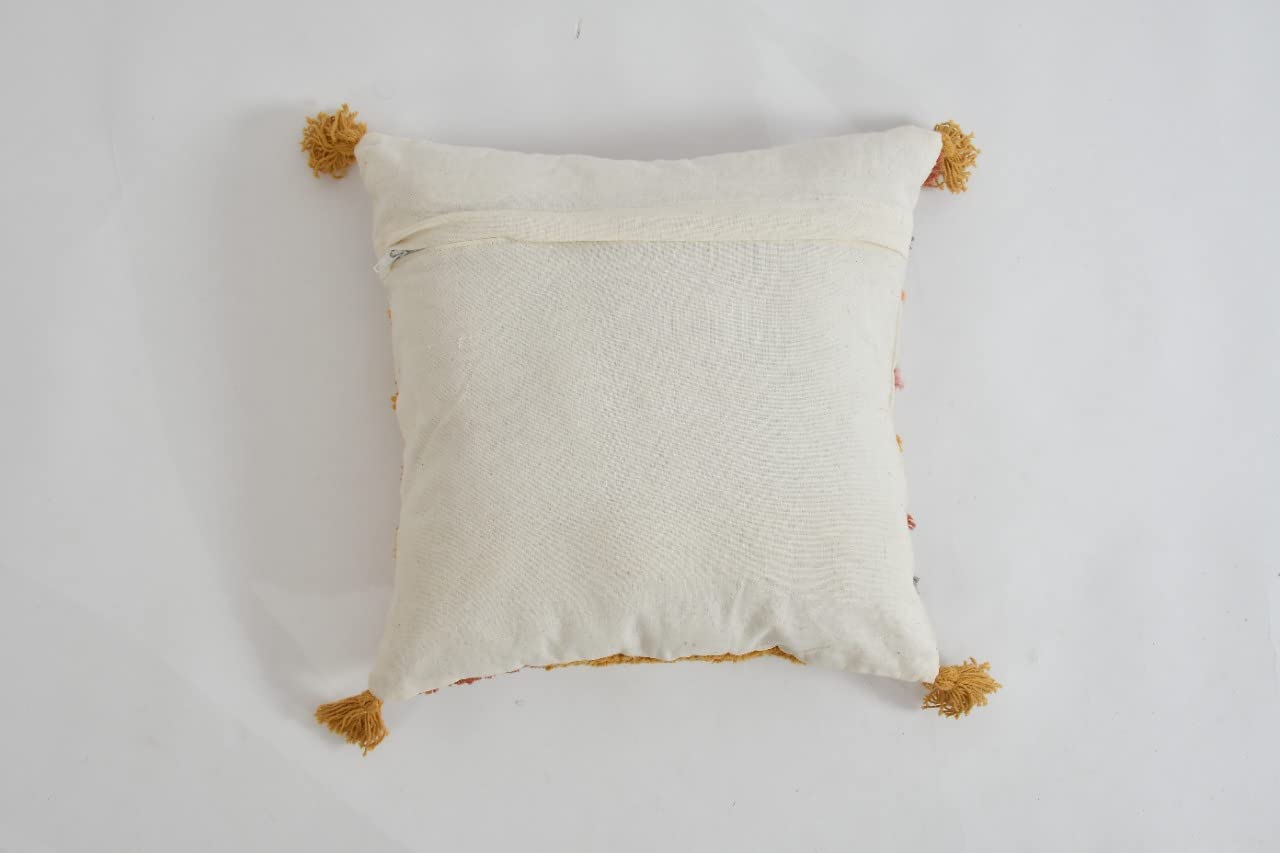 Modern Bohemian Tufted Geometric Throw Pillow Covers with Pom Poms, 16x16 Inch, 1 Piece | Decorative Accent Cushion for Sofa Couch Decor