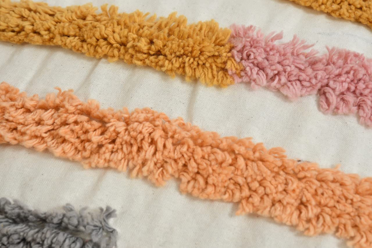 - Easy Care Instructions: For lasting vibrancy and texture, we recommend spot cleaning or a gentle machine wash in cold water with similar colors. Tumble dry on low or air dry flat to maintain the tufted design and pom-pom integrity. Do not bleach.