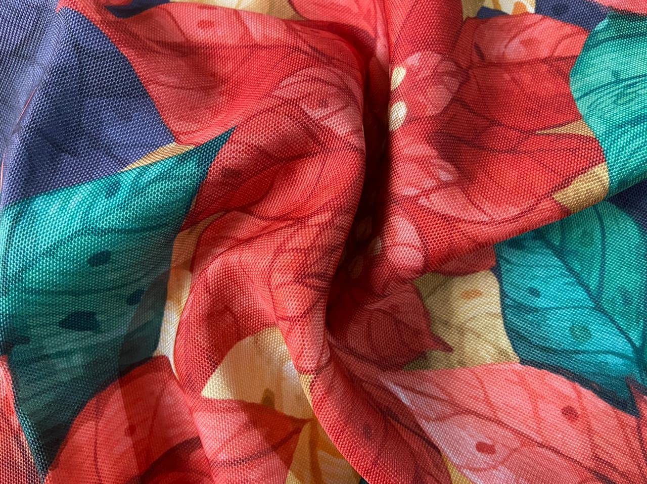 - Experience the luxurious feel of our Cotton Feel Fabric, digitally printed with a vibrant multicolor clover design.