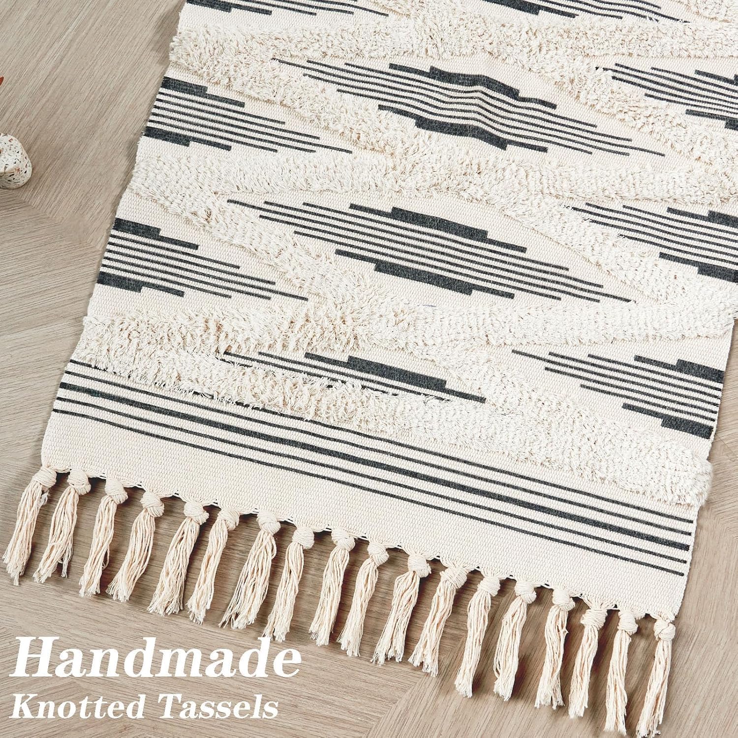 Modern Hand Woven 100% Cotton Zigzag Rug Runner 2x5 ft | Designer Carpet for Bedroom Living Room Floor Decor