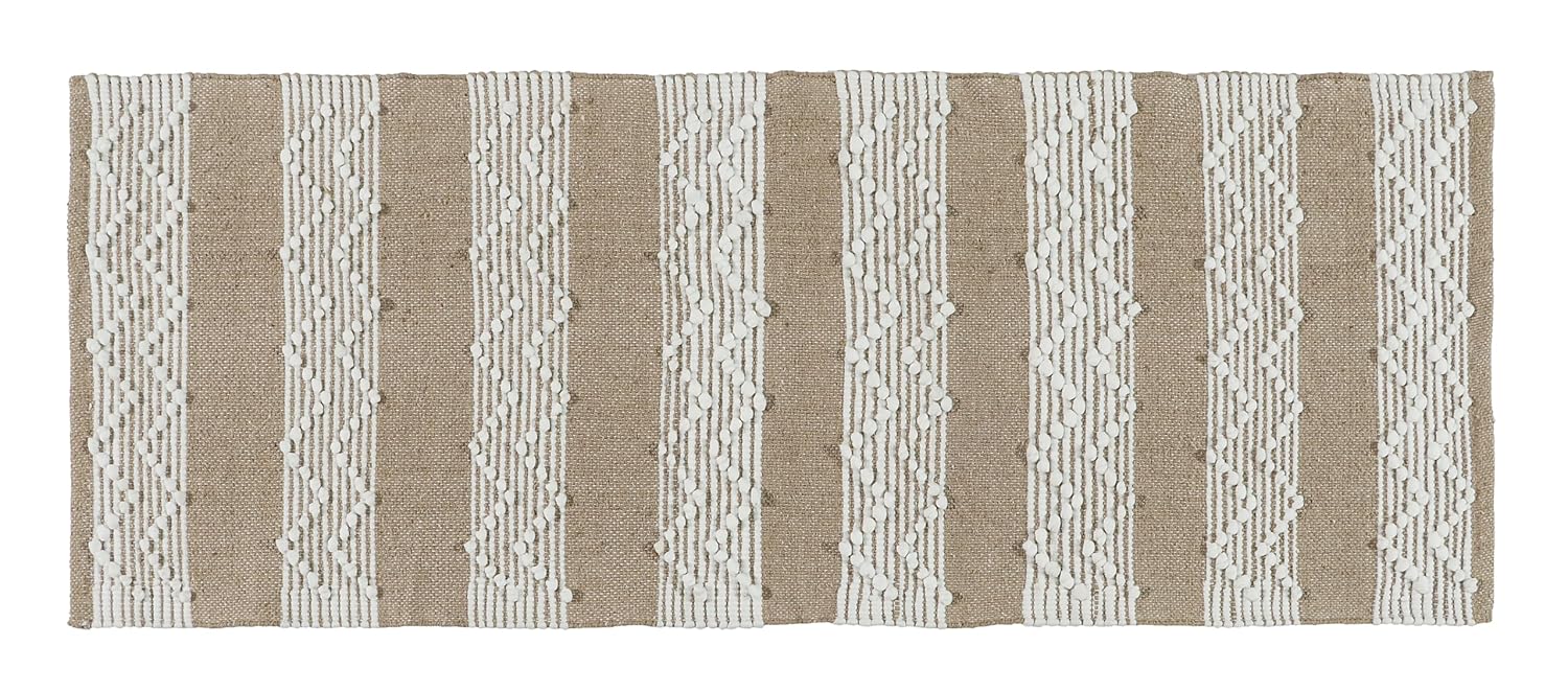 Modern Hand Woven 100% Natural Cotton Diamond Pattern Rug, Carpet, Bed Side Runner 2x5 ft (Beige & White) | Bedroom, Living Room, Washable Floor Runner