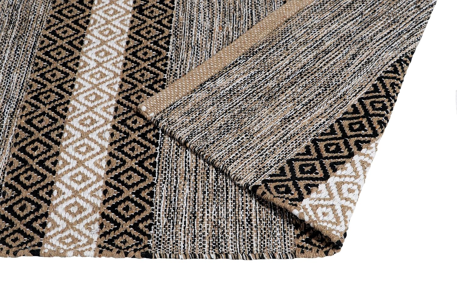 Modern Hand Woven Natural Cotton Diamond Pattern Rug 2x5 ft | Eco-Friendly Washable Bedroom Living Room Runner