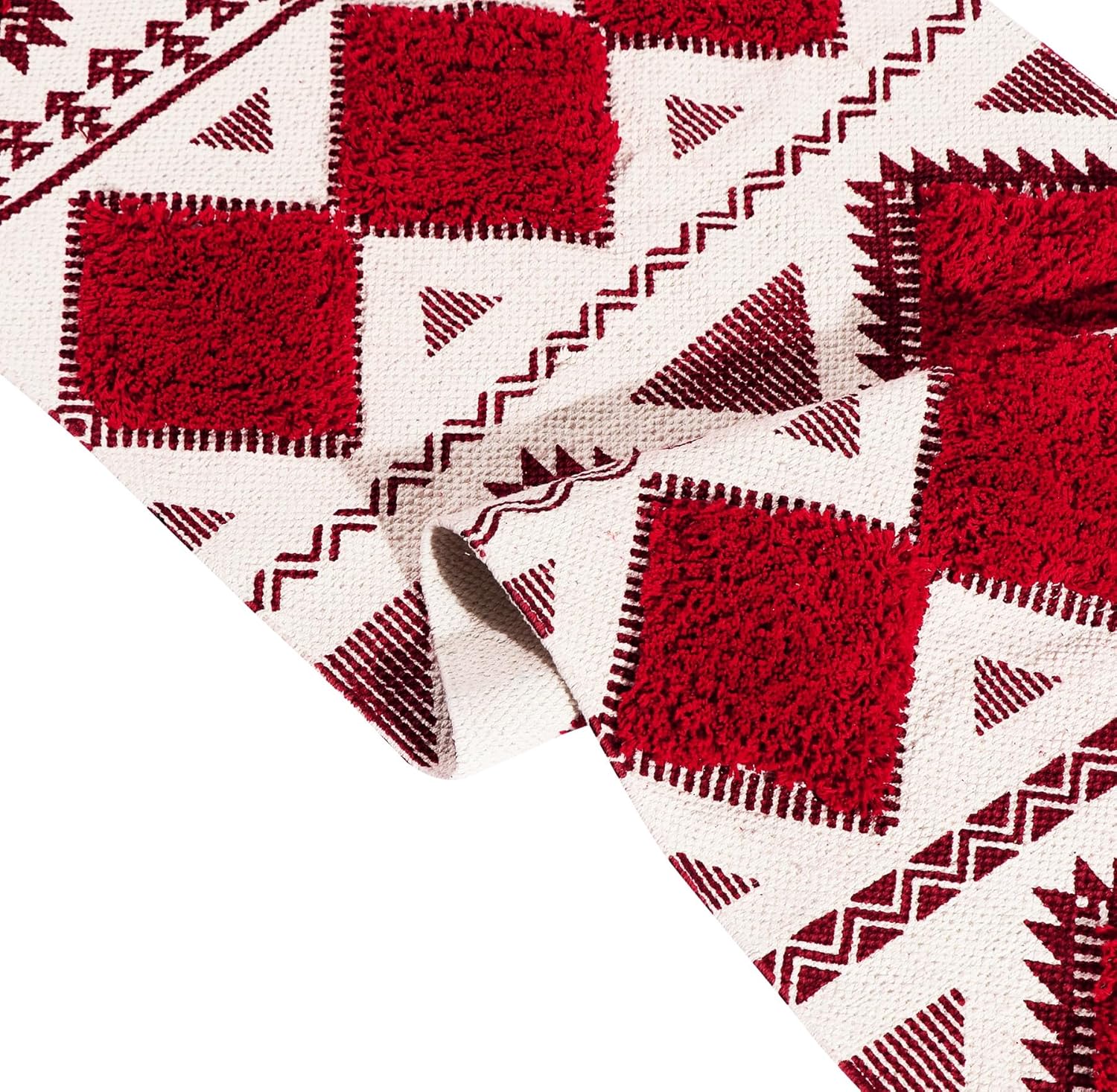 Modern Hand Woven Tufted Cotton Rug Runner 2x5 ft (Red & White) | Designer Area Carpet for Bedroom, Living Room