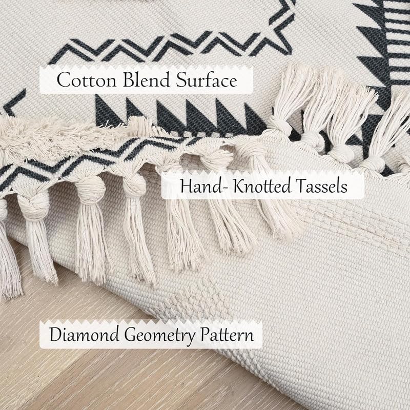 Printed Diamond Pattern Hand Woven 100% Cotton Washable Bedside Runner Rug 2x5 Feet | Living Room, Bedroom, Kitchen Carpet