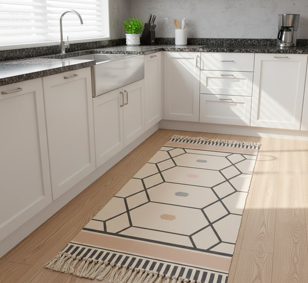 - Material Excellence: Experience the luxurious feel of our hand-woven runner, crafted from 100% premium quality organic cotton yarn by skilled rural artisans in India. Each rug is a unique piece of art, reflecting rich tradition and quality.