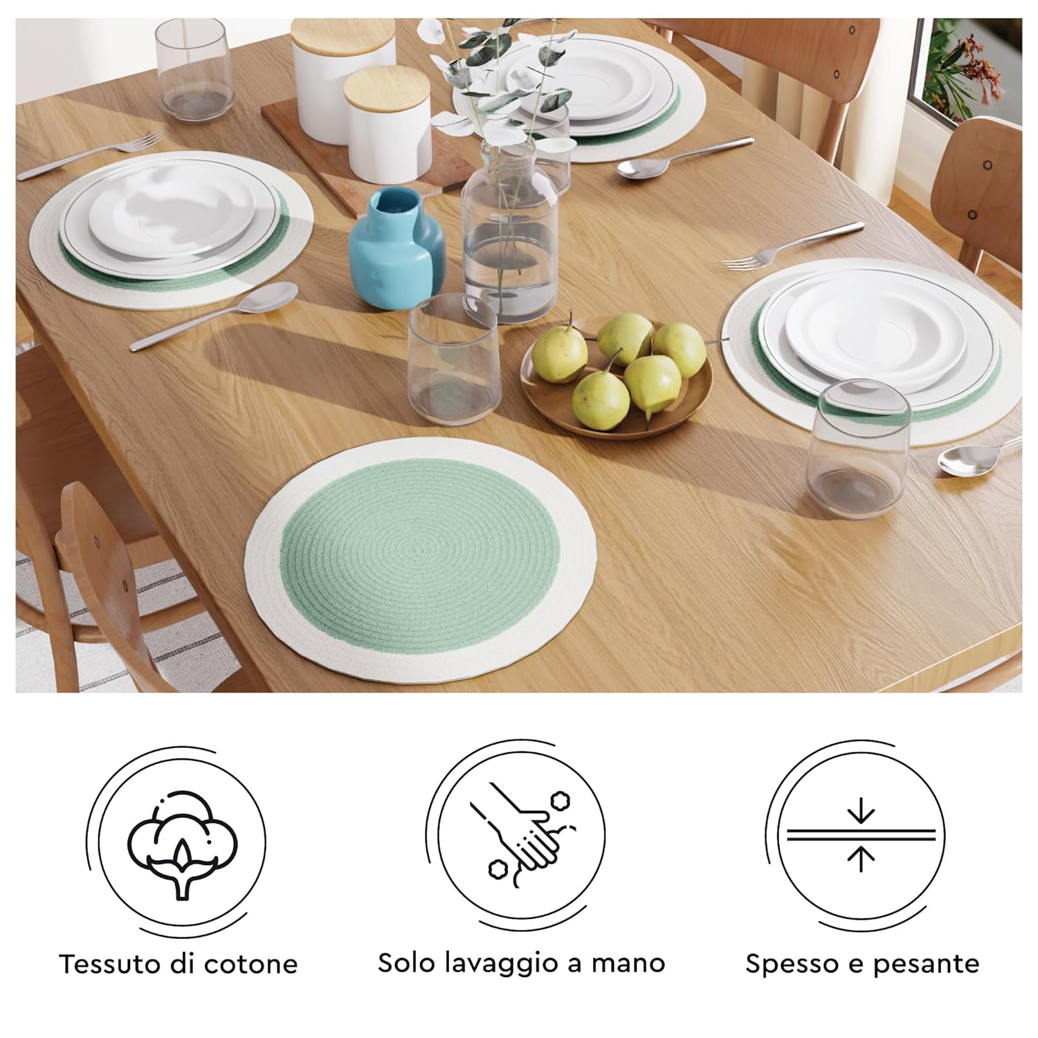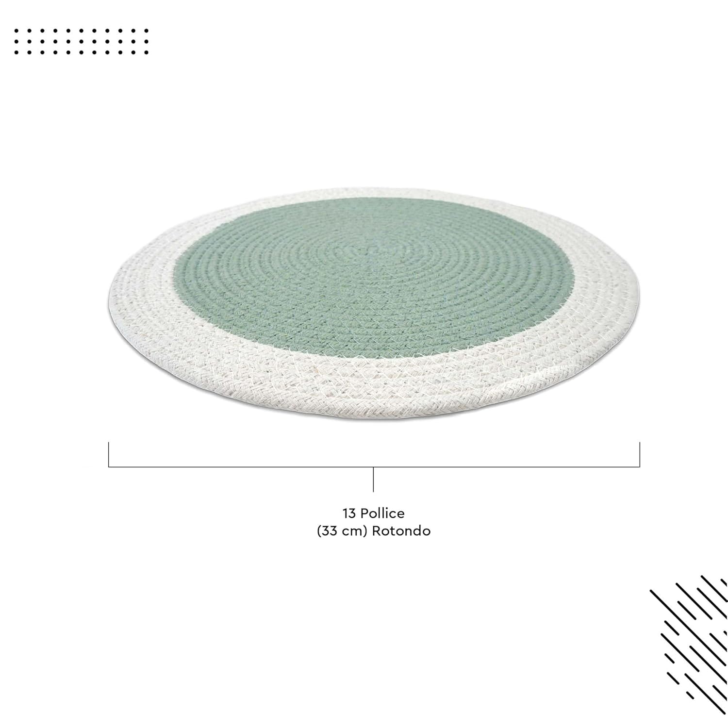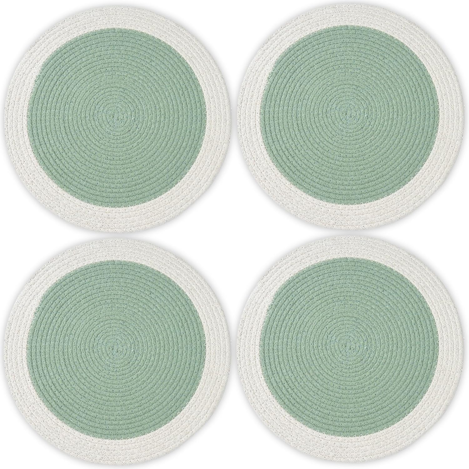 Sage & Off White Handmade Ribbed Cotton Round Table Mats Set of 4 | Heat-Resistant, Non-Slip, Washable Dining Placemats