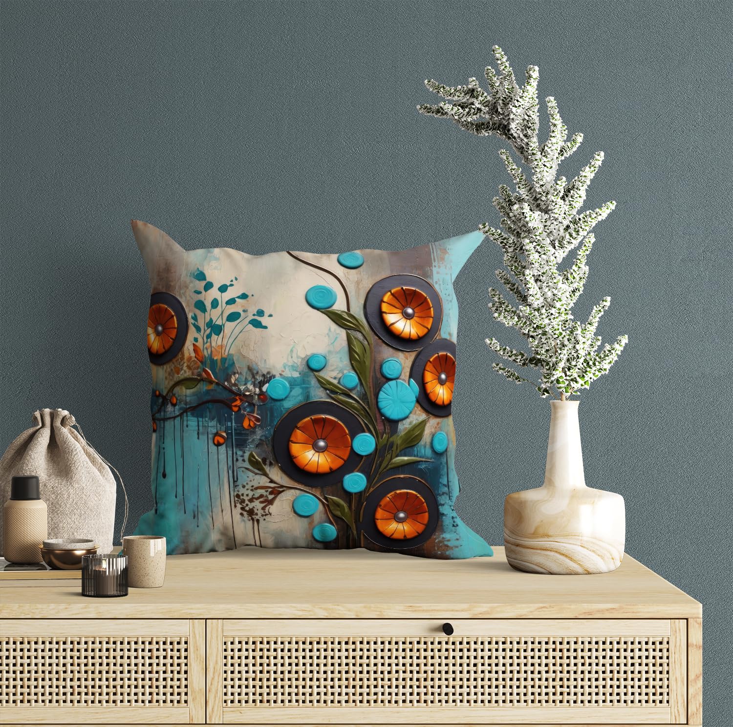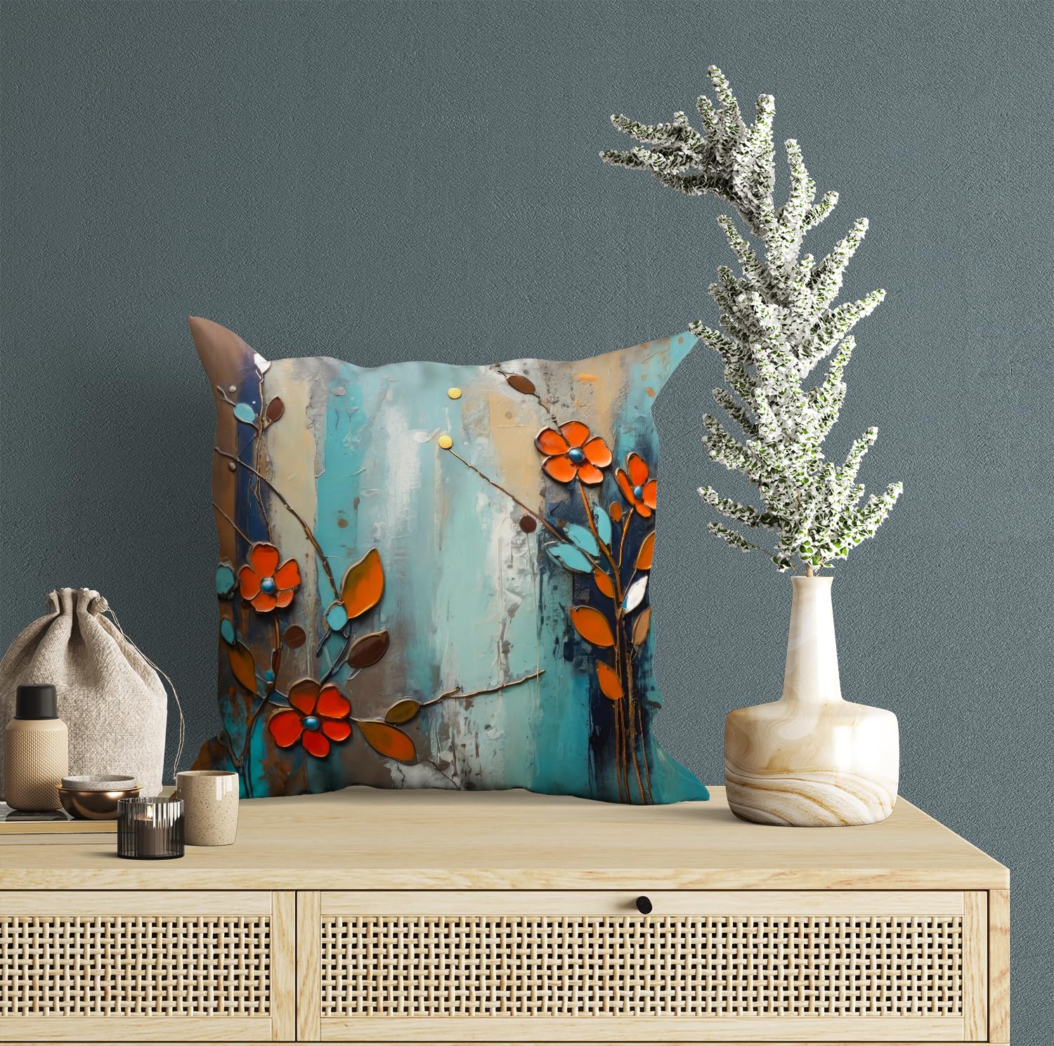 SCPmarts Flower Printed Satin Cushion Covers Set of 5, 16x16 Inch | Soft Decorative Throw Pillow Covers for Sofa & Home Decor