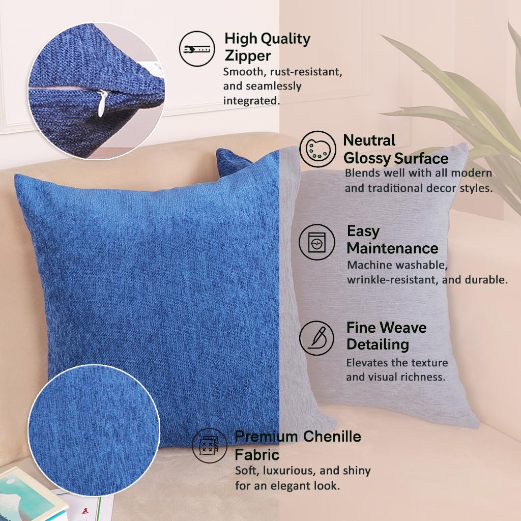 Soft Velvet-Feel Textured Chenille Cushion Covers Set of 2 – 16x16 Inches | Durable, Washable for Sofa, Couch, Bed Decor