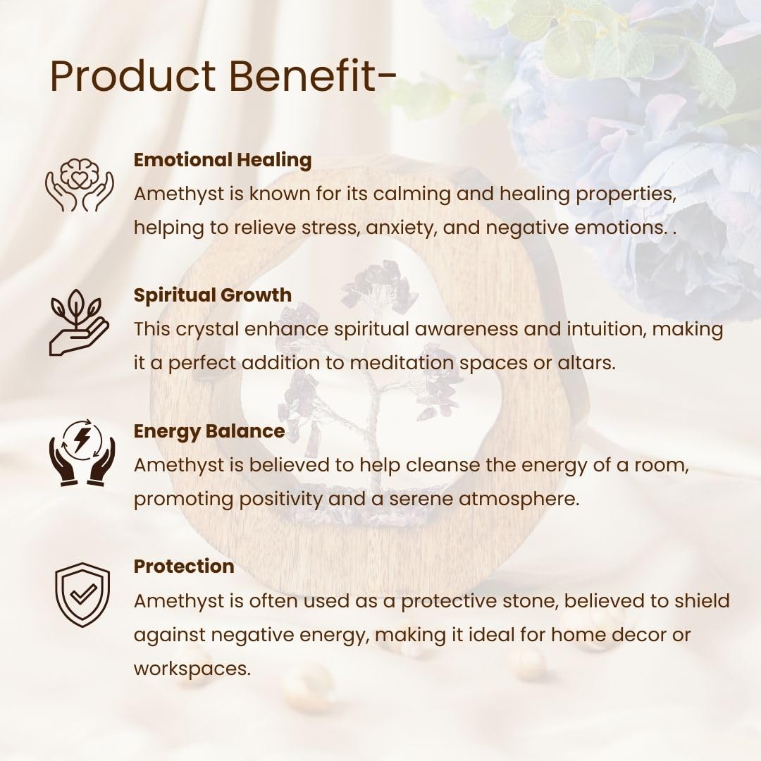 Spiritual Amethyst Crystal Tree in Wooden Ring for Chakra Healing & Feng Shui | Gemstone Bonsai Showpiece 17cm